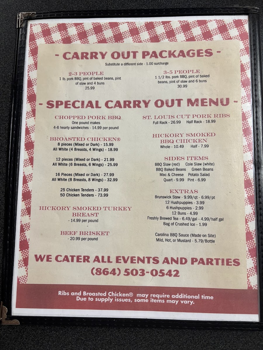 Welcome to Carolina Barbecue, where authentic Southern flavors come to life. Located at 7119 Lone Oak Rd, Spartanburg, this hidden gem invites you to indulge in their mouthwatering menu focused on slow-smoked meats and hearty sides. Every dish embodies a commitment to quality and tradition.